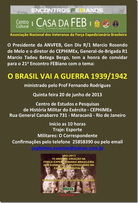 - 21º Encontro FEBiano com o tema: O BRASIL VAI A GUERRA 1939/1942